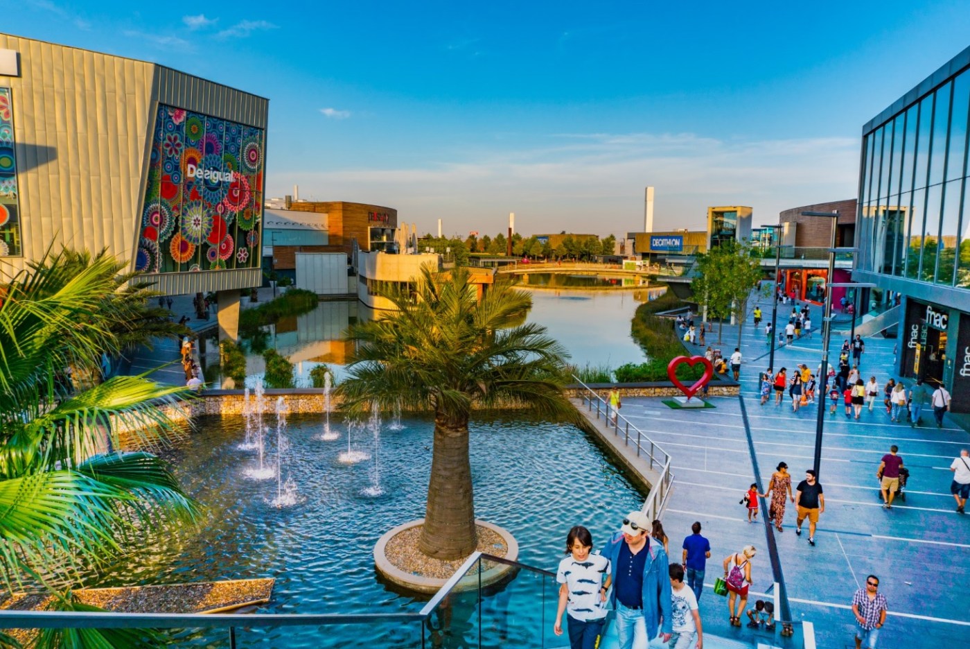 Ce qui lui donne donc un petit air de Venise. Et au cas ou où ne serait pas suffisant, on y retrouve également un cinéma, un parc d’attractions, une salle d’escalade et une piscine à vague. Ce qui en fait un lieu complet et agréable pour toute la famille.